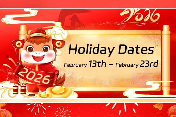Dear Sir/Madam, Our company will be closed from February 13th (Friday) to February 23rd (Monday), 2026. Normal business operations will resume on February 24th (Tuesday), 2026.